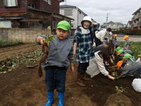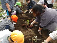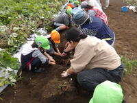 なかなか掘り出せない時には、保育補助のお母さんたちの出番です!「手伝ってくださ~い!お願いしま~す!」
