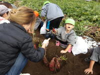早速、金子さんがしていたように、子ども達も、真似をしてさつまいもを掘り始めました。