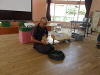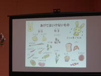 まずは、うさぎの体の特徴・抱っこの仕方・食べさせていいもの・いけないものなどのお話を聞きました。
