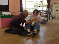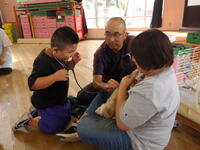 次は、うさぎの心臓の音を聴診器で聞かせてもらいました。「これが、心臓の音!?どくどくどく・・・って、めっちゃ速かった。電車が動いているみたいな音だね。」でも、1番びっくりしていたのは、初めて音を聞いた先生たちでした。