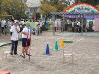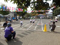 保護者競技では、役員さんが楽しい種目を企画、準備、進行してくれました。親子リレーでは、すみれ組VSさくら組で勝負し、すみれ組さくら組の子ども達、卒園生、保護者の皆さんの勇姿がたくさん見られました。