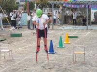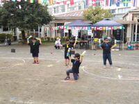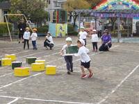 さくら組個人競技では、これまでコツコツと頑張ってきた姿を運動会に来ていただいたみな暗に見てもらえることを楽しみにしながら取組ました。そして、竹馬、一本下駄と、自分なりの目標に向かって、自分の力を出してあきらめずに取り組む姿、遊びながら考え試し工夫する姿を見せてくれました。