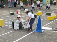 次は、かけっこ。すみれ組は、ゴールに向かって思い切り走り、さくら組は、自分の力を出して友達と競い合うことを楽しみながら、ゴールに向かって真っすぐに走りました。