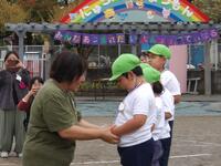 最後は閉会式。園長先生から、手作りメダルのプレゼントです。みんな、最後までやり遂げた満足感と楽しさでいっぱいの笑顔が見られました。