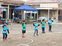まずは、開会式。さくら組とすみれ組による「はじめのことば」でスタートしました。体操は「チェケマッチョ!」をし、心と体の準備を整えました。
