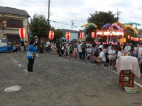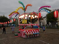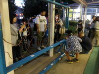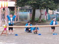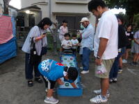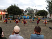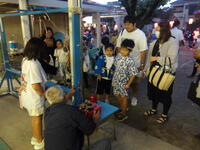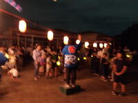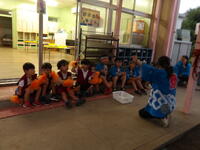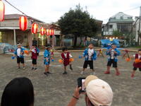 夜店の次は、みんなで盆踊りを3曲、踊りました。「月夜のぽんちゃらりん」「クワガタ音頭」「炭坑節」、卒園生や保護者の方、地域の方も一緒に踊ってくださいました。太鼓を叩いてくださったお父さん方も、ありがとうございました。