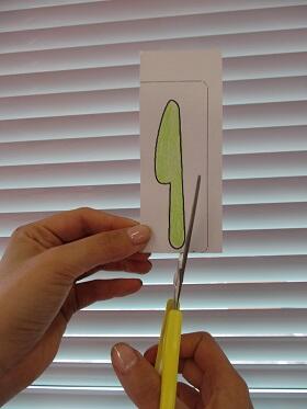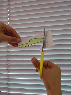 ②はさみを上向きになるように持ち、線をよく見ながらゆっくり切り進めます。