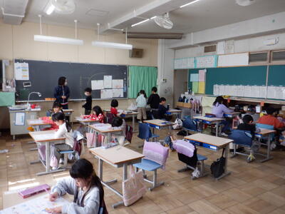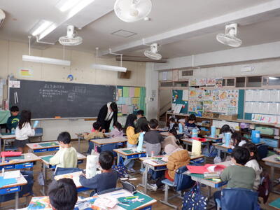 1年生: 「どんなおはなしができるかな」です。教科書の挿絵を見て想像したことをお話にしています。