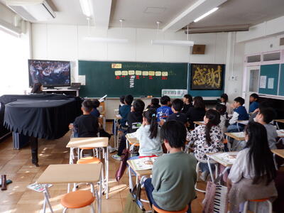 3年生: 「トランペット吹きの休日」の鑑賞です。トランペットの音色の美しさを存分に味わいました。