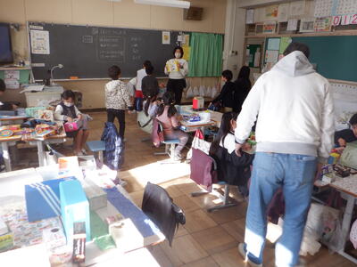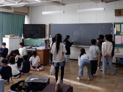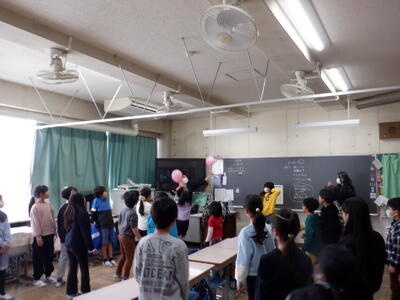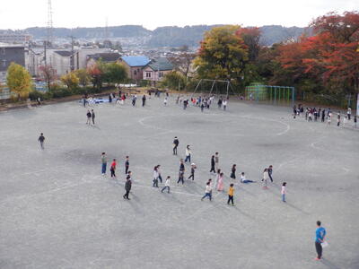 たてわり班活動の3回目(2学期)です。校庭では「だるまさんが転んだ」が人気でした。教室では「風船バレー」「言葉当てゲーム」「ジャンケン列車」等、様々な遊びをしていました。どの班も6年生を中心に、仲良く遊びました。