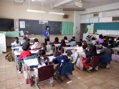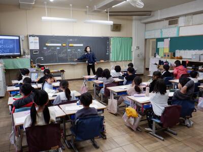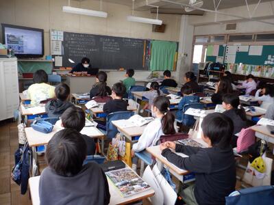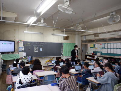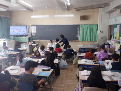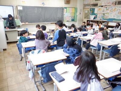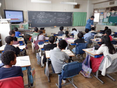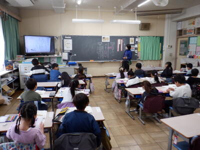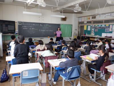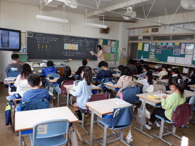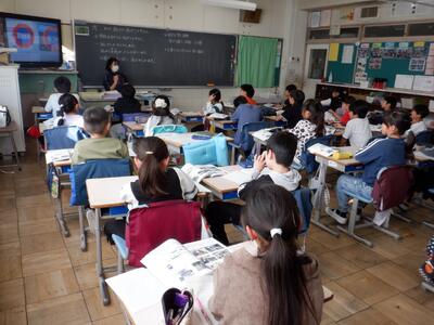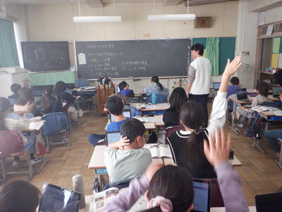 5年生:「固有種がおしえてくれること」です。文を読み、初めて知ったことや疑問に思ったことを発表しました。