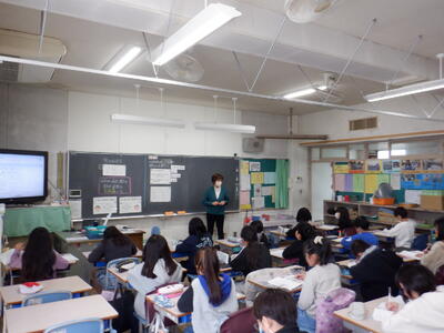 給食委員会の発表です。調理員さんの思いやフードロスのこと等を詳しく説明し、クイズで復習もしました。旭小自慢の美味しい給食を残さず食べてほしいですね。給食委員会の皆さん、ありがとうございました。