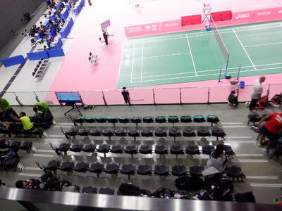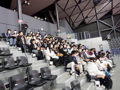 6年生:京王アリーナで、デフバドミントンを観戦しました。ダブルスでは、選手同士や監督が手話で意思疎通を図る場面が見られました。観戦時間内に日本人選手の試合はなかったのですが、旭小の真下に日本人選手団の席があり、数名の選手に直接手を振って応援できました。子供たちにとっては、迫力のある試合をライブで観戦しながら、デフへの理解を深める貴重な機会となりました。関係者の皆様に感謝申し上げます。