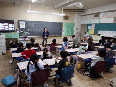 3年生: 「学校の消防施設」です。消火器、消火栓、煙探知機など、たくさんあることが分かりました。