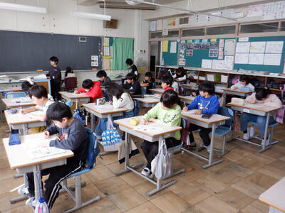 4年生: 「季節と生物~秋~」の単元テストです。ツルレイシの夏と秋の違いなどの問題に答えました。