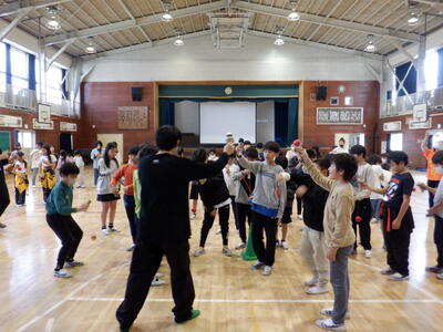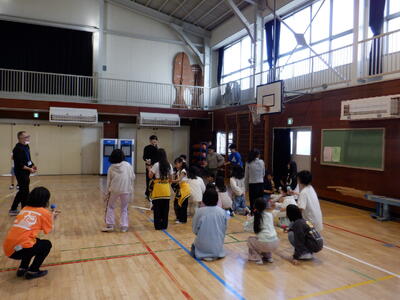2年生: 「いもいもパーティー」です。いろいろな遊びを準備し、1年生と楽しい時間を過ごしました。