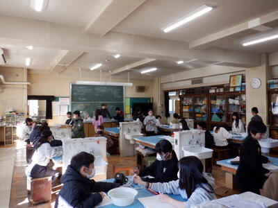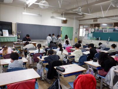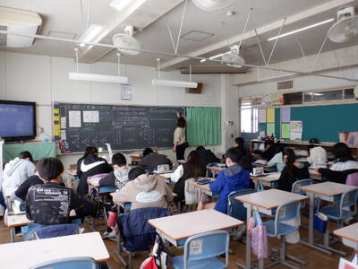 6年生: 「冬を明るく暖かく」です。緊急時に新聞紙等を活用して、寒さをしのぐ方法などを知りました。