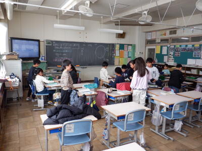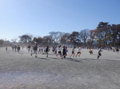 持久走週間の最終日でした。走り終えた子供たちは、いい汗をかいていました。先生たちも全員一緒に走りました。持久走カードのマスも、着々と塗り進められていました。これからも、寒さに負けない体力づくりに取り組みましょう!