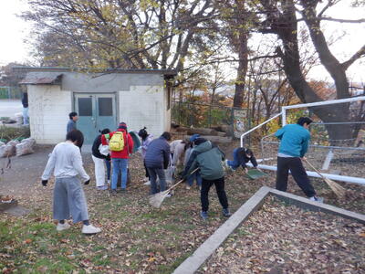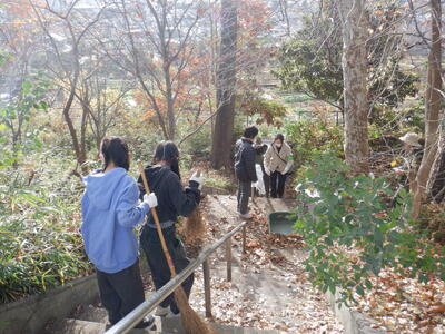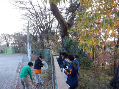 雑木林と花壇、畑の清掃活動です。5・6年生と教員、保護者ボランティアで、大量の落葉や枯れ草などを集めました。花壇や畑の周りがすっきりし、雑木林の小道も見えてきました。高学年・保護者ボランティアの皆さん、ありがとうございました。