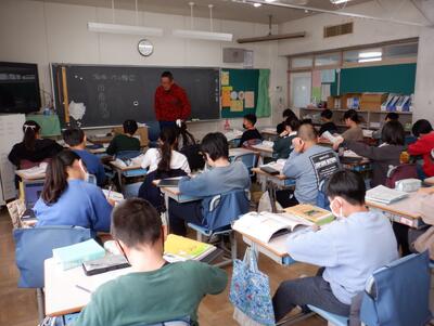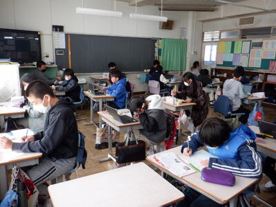 2年生:国語のまとめテストです。2学期に習ったことを生かして、一人一人が真剣に取り組んでいました。