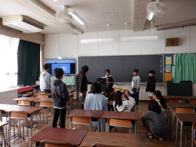生活美化委員会の発表です。初めに、常時活動(清掃用具の点検やリサイクルボックスの回収等)の紹介がありました。次に、動画を見せながら、正しい箒の使い方や用務員さんによるゴミの捨て方の説明がありました。最後は、クイズでポイントを復習しました。これからもきれいな学校で気持ちよく過ごしたいですね。生活美化委員の皆さん、ありがとうございました。