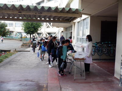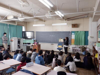 1年生: 「おなか元気教室」です。出張授業でヤクルトの方から胃腸の働き等を教えていただきました。