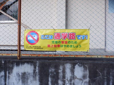 体育館側フェンスに「路上駐車禁止」の横断幕が設置されました。また、横断歩道のラインが白く塗り直されました。近くをお通りの際に、ご確認ください。安全第一で、無事故の2025年に!