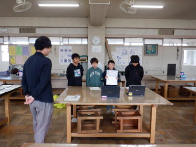 4年生: ①②担任が通知表をもとに頑張り等を伝えています。③折紙で独楽や無限キューブ等を作りました。