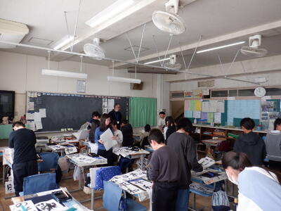 6年生: 「江戸の文化と学問」です。杉田玄白、伊能忠敬等の業績を調べ プリントにまとめています。