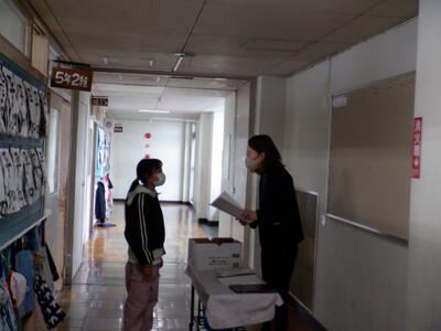 ユニセフ募金の2日目でした。代表委員が募金箱を持って呼び掛けています。募金してくださった皆さん、ありがとうございました。明日が最終日です。世界中の子供たちを救うために、たくさん集まると良いですね。