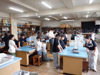 4年生: 「すがたを変える水」です。ビーカーの水を沸騰させ、出てきた泡を集めて正体を調べます。