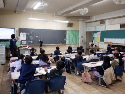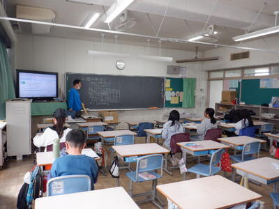 4年生: クイズ、6年生に挑戦です。4年生の問題に指名された6年生が答えました。正解は3問中…。