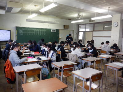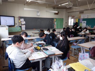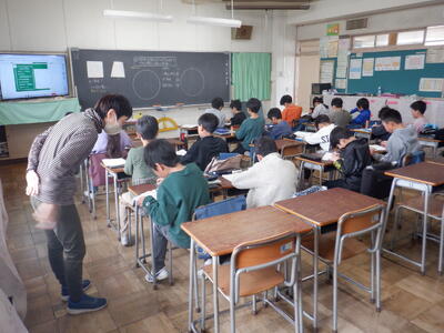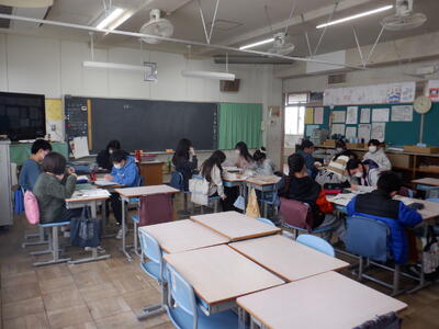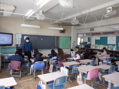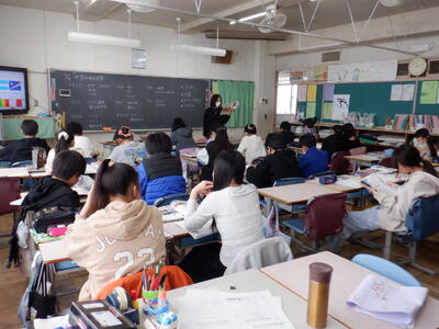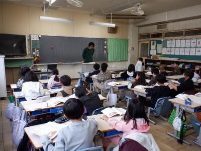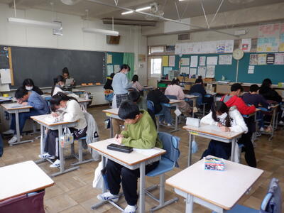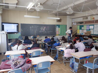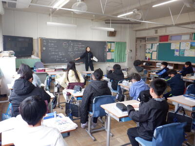 6年生が、四中で中学校の出前授業を受けました。1組は数学、2組は国語、3組は英語でした。子供たちは、専門的な授業を受け、中学校での授業が楽しみになったようです。四中の先生方、ありがとうございました。