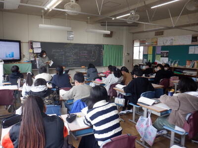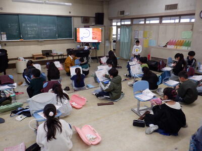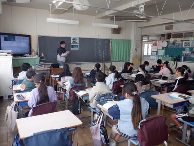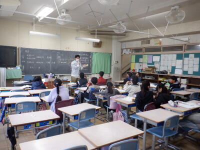 「災害体験者から学ぶ」です。教員の代表が東日本大震災(2011.3.11)の体験を語りました。子供たちは真剣な表情で話を聞いていました。災害時の行動や日常の対策等を学ぶ、よい機会となりました。