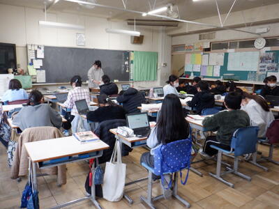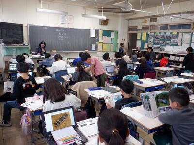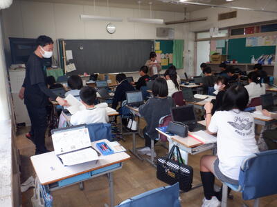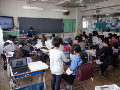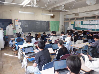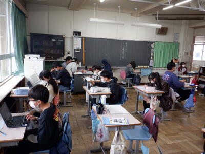 6年生: 「今、私は、ぼくは」です。発表の準備に向けて、プレゼンや原稿のチェックをしています。