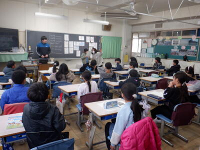 5年生: 「子どもの未来科」です。海を守ろうなど、各自がみんなで学びたいことをスピーチします。