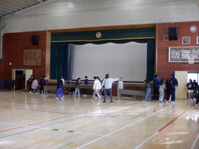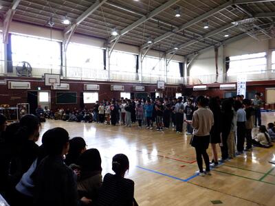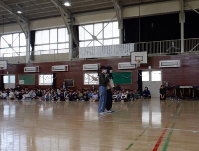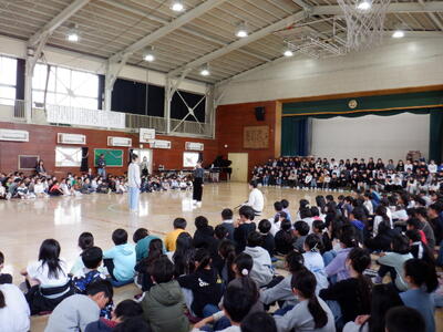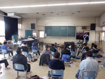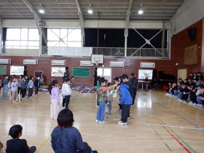 1年生: 「入学式の出し物の練習」です。新1年生に、学校の楽しさが伝わるように頑張っています。