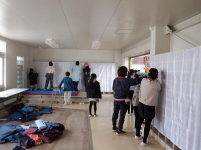6校時、5年生が卒業式に向けて、会場の準備をしました。6年生からバトンを受け継いで、頑張りました!