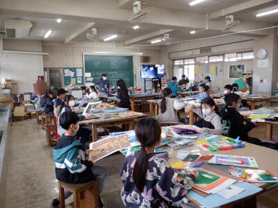 4年生: 「作品返却」です。地下のひみつ、光にかざして…など、全部で5つの作品が返されました。