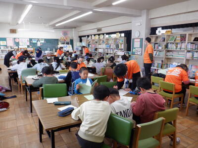 6年生: 「学習のまとめ」です。各自で漢字ドリルや分数プリントの仕上げ等に取り組んでいました。