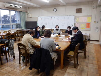元旦マラソン報告/5年生学年行事(日本文化体験)報告/読み聞かせ活動状況/四中校区育成会報告/大掃除とPTA掲示板の装飾/雑木林関係/来年度のPTA会費の集金方法/市P連報告/ピーポー君の家へのお礼/来年度の役員について