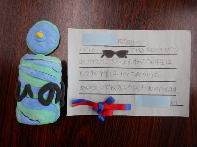 6年生の男子3名から、感謝の手紙と手作りの鉛筆立てをいただきました。また、別のグループから、イチゴとバナナのクレープが届きました。登校日数は、残り11日となりました。卒業までの一日一日を大切に過ごしてほしいと思います。
