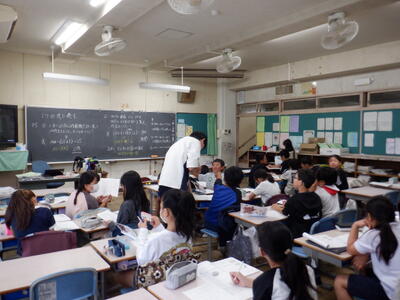 6年生: 「月と太陽」です。月の形が毎日変わる理由を、太陽・地球・月の位置関係等から理解しました。