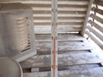 *百葉箱の温度計です。朝8時の気温は、2℃ でした。子供たちは、寒さに負けず、1週間よく頑張りました。