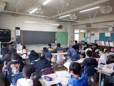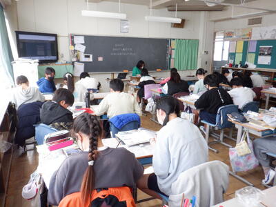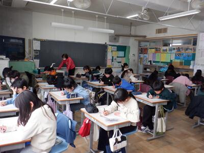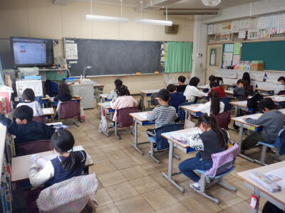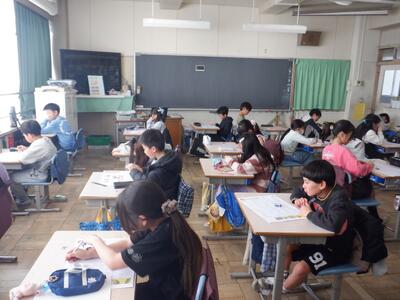 6年生が、四中で中学校の出前授業を受けました。1組は数学、2組は国語、3組は英語でした。子供たちは、専門的な授業を受け、中学校での授業が楽しみになったようです。四中の先生方、ありがとうございました。