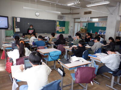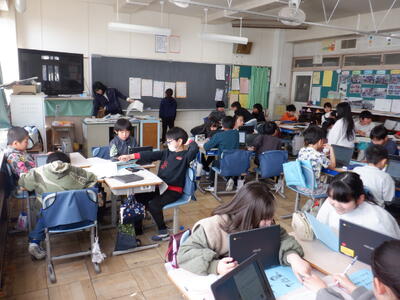 6年生: 「今、私は、ぼくは」です。発表の準備に向けて、プレゼンや原稿のチェックをしています。