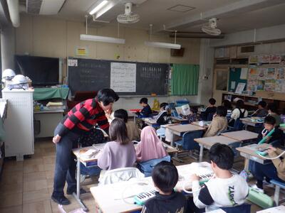 2年生: 「こぐまのひっこし」です。鍵盤ハーモニカの指使い(親指の位置等)を練習しています。
