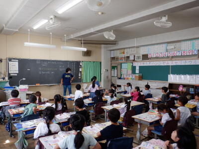 夏季学習会の最終日でした。学習会では、主に1学期の復習問題や夏休みの課題等に取り組みました。6年生の中には、卒業文集の下書きをしている子もいました。幸先の良いスタートが切れそうです。校庭を見渡すと、ゴーヤが実を染め、稲穂が実り始め、サツマイモが葉を茂らせていました。来週から2学期が始まります。一回り成長した子供たちに会えることを、教職員一同、楽しみにしています。