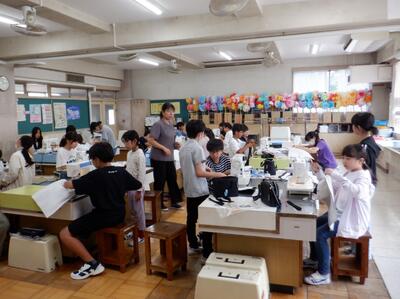 学習会の2日目でした。暑い中、最後までよく頑張りました。四中生が優しく丁寧に教えてくれています。