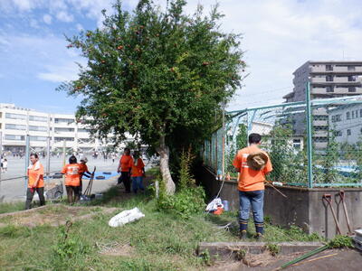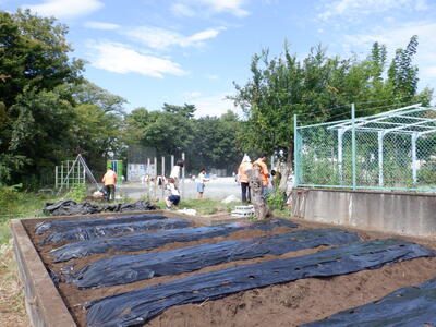 10月11日(土)、サツマイモ畑の蔓切りを行いました。学校公開日(10/18)に、2年生が芋掘りをする予定です。旭が丘商工連合会の皆様、ありがとうございました。